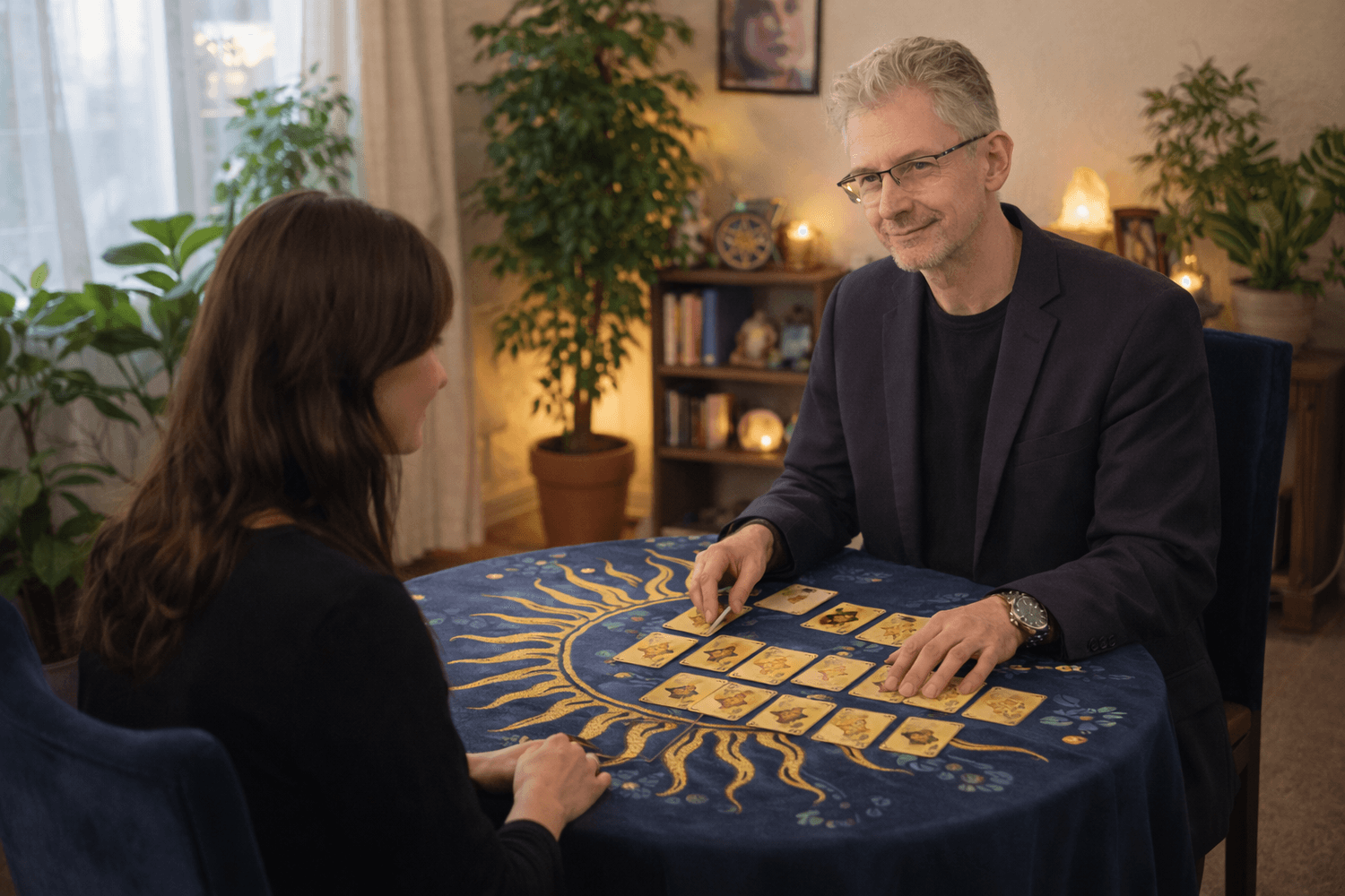 Je m’appelle Philippe BELGRAND, voyant, médium et cartomancien installé à Rennes, au cœur de la Bretagne (Ille-et-Vilaine, 35). Depuis plus de vingt ans, je consacre ma vie à la compréhension des symboles, à la lecture du Tarot de Marseille, de l’Oracle Belline et de l’Oracle Gé, des outils fascinants pour éclairer les chemins de vie, révéler les blocages, et réveiller l’intuition qui sommeille en chacun de nous.