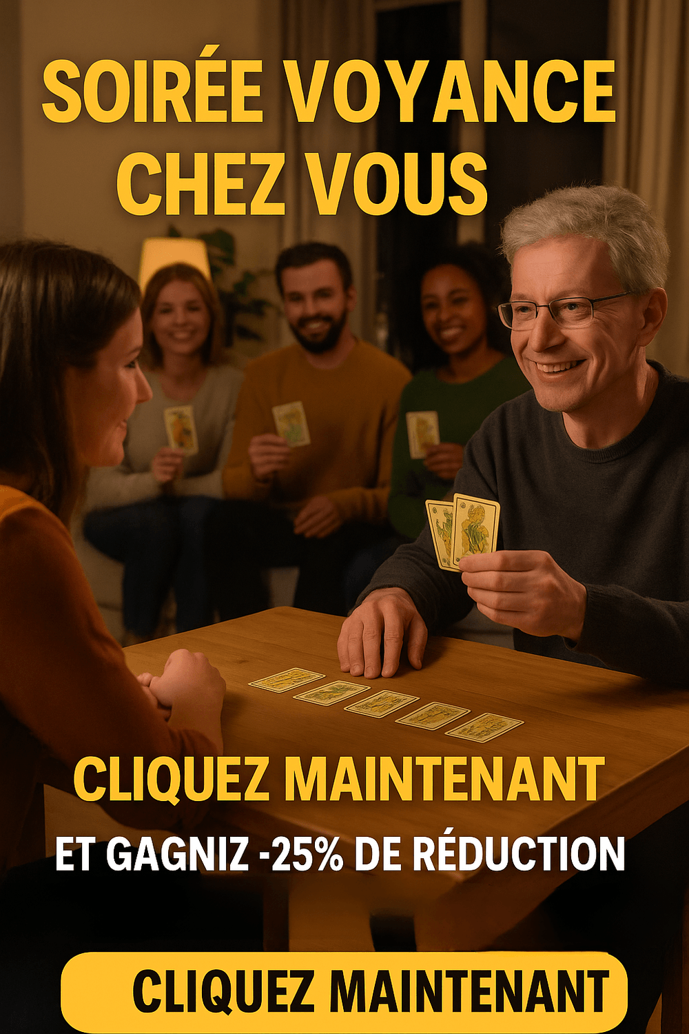 Je me déplace directement chez vous pour animer une soirée voyance conviviale dans votre maison ou appartement.