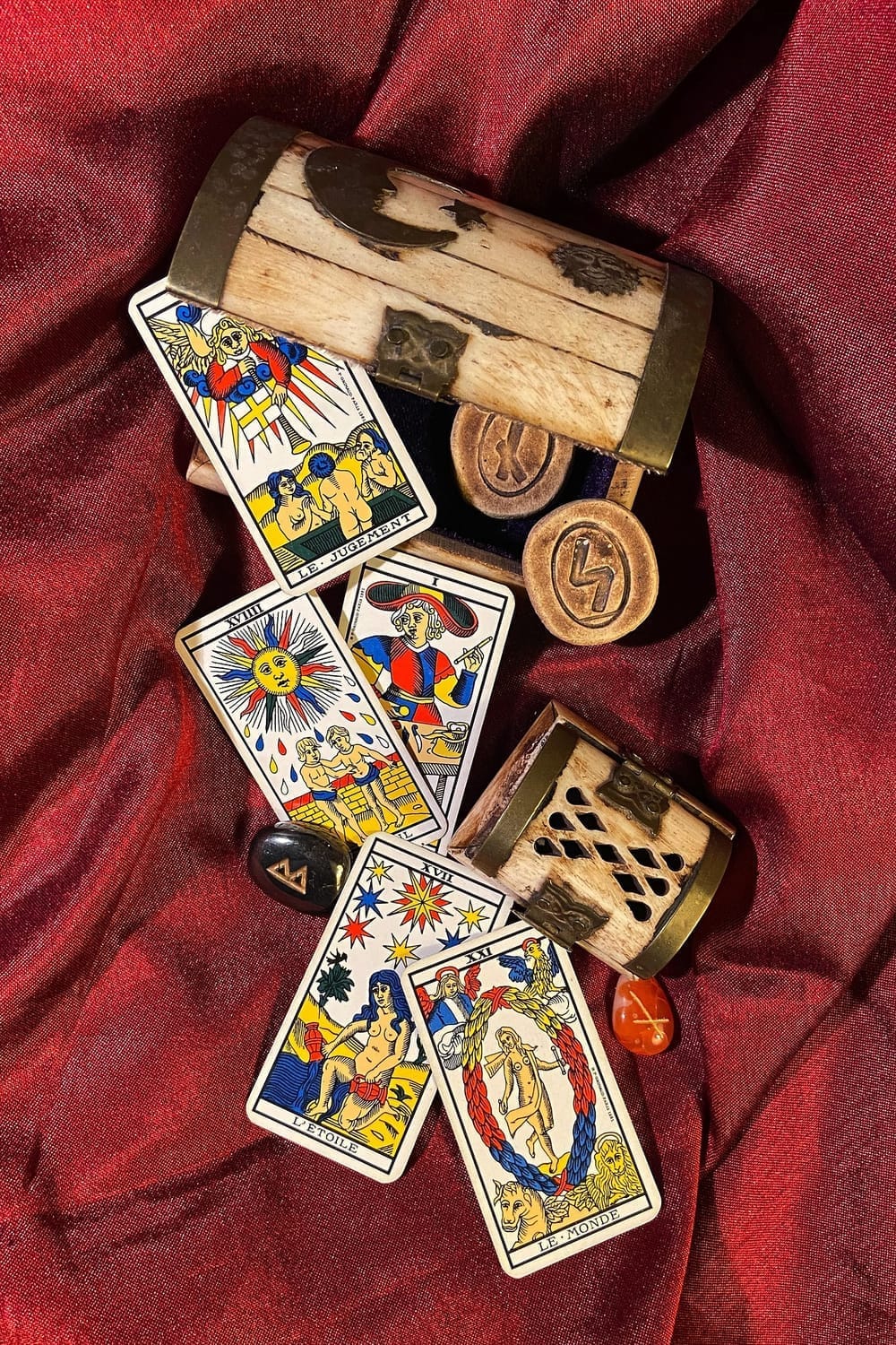 L’ambiance est bienveillante, détendue et respectueuse. Je me sers de mes supports de prédilection : le Tarot de Marseille, l’Oracle Belline et l’Oracle Gé.